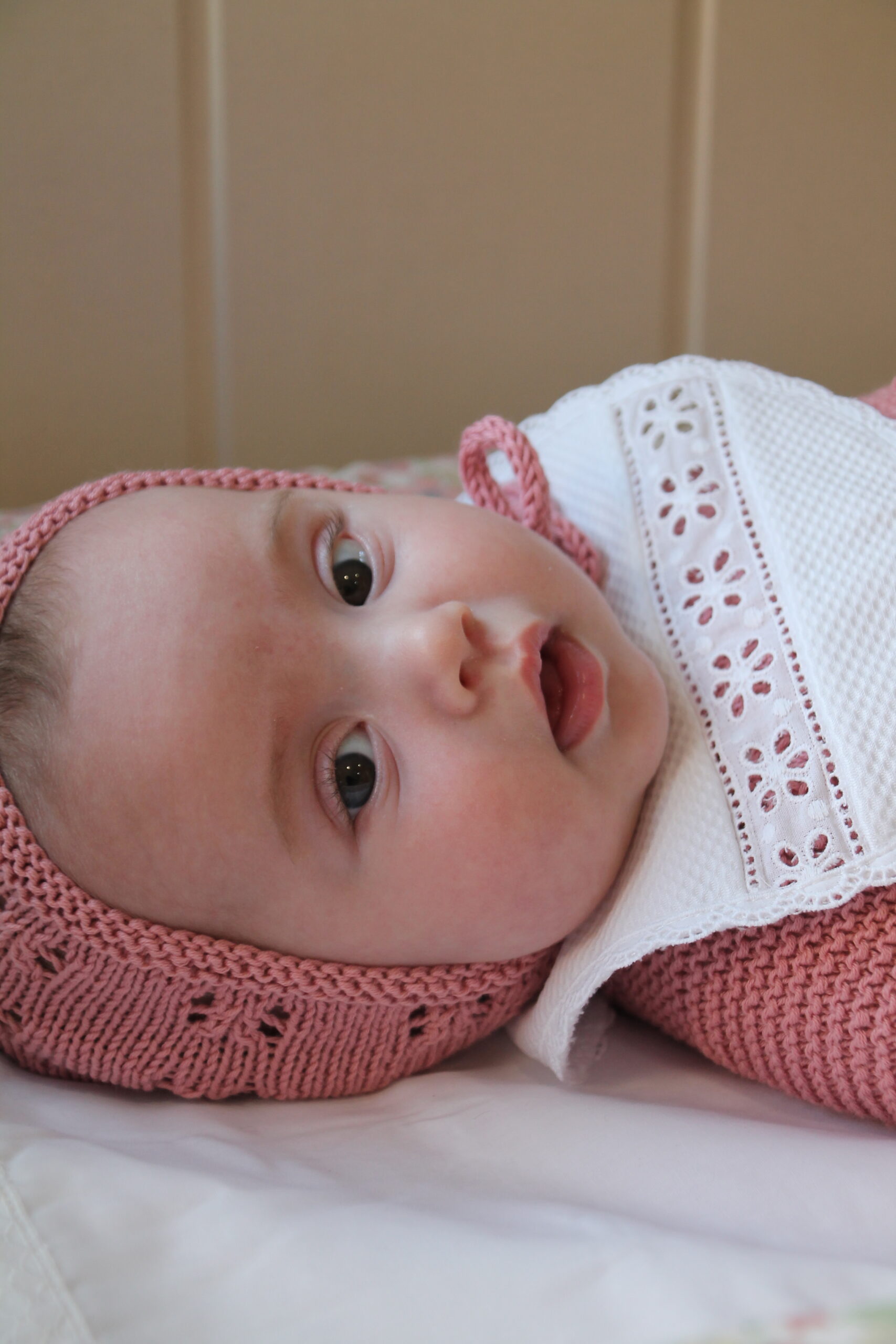 El bebé de rosa tiene 8 meses, el niño 3 meses.