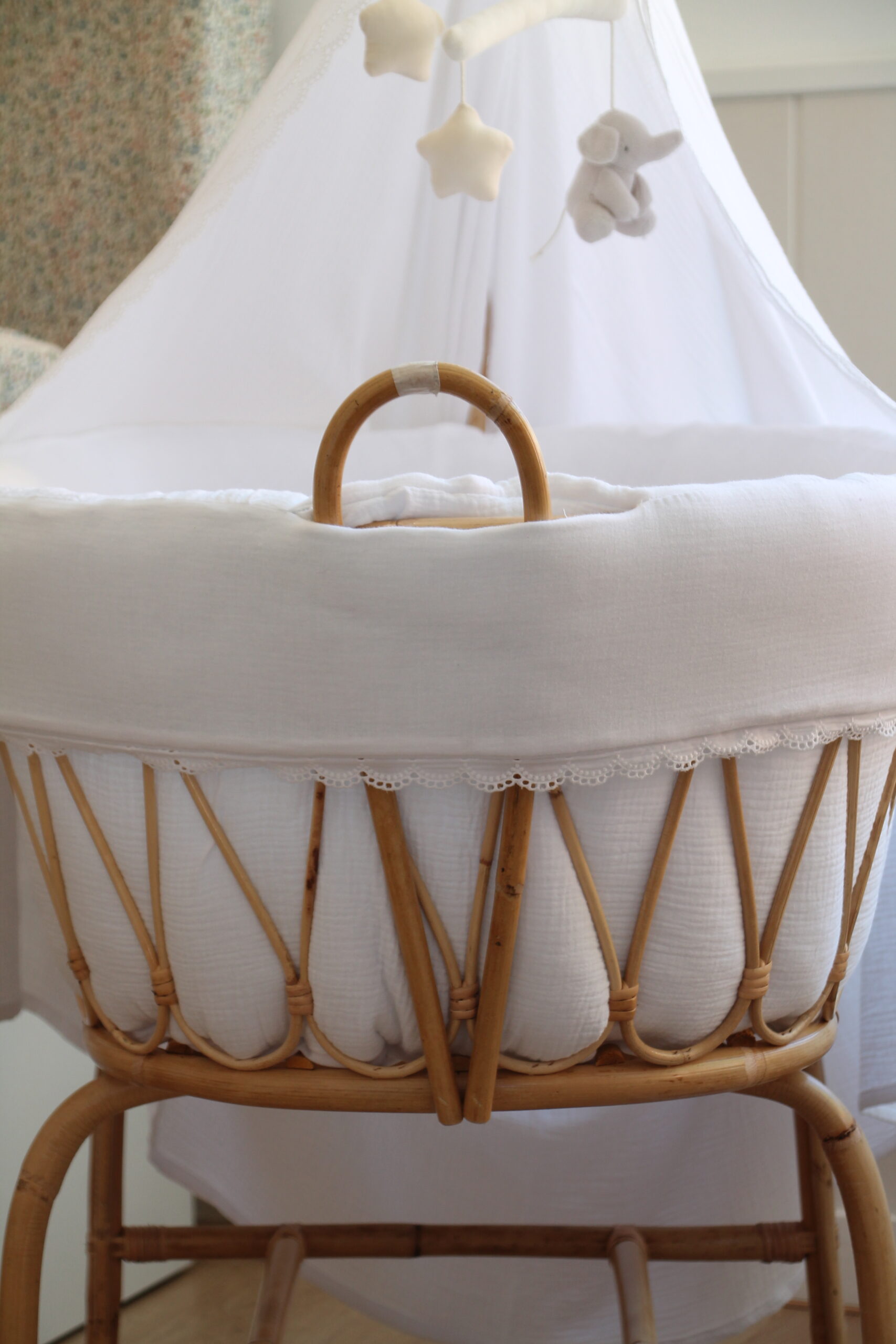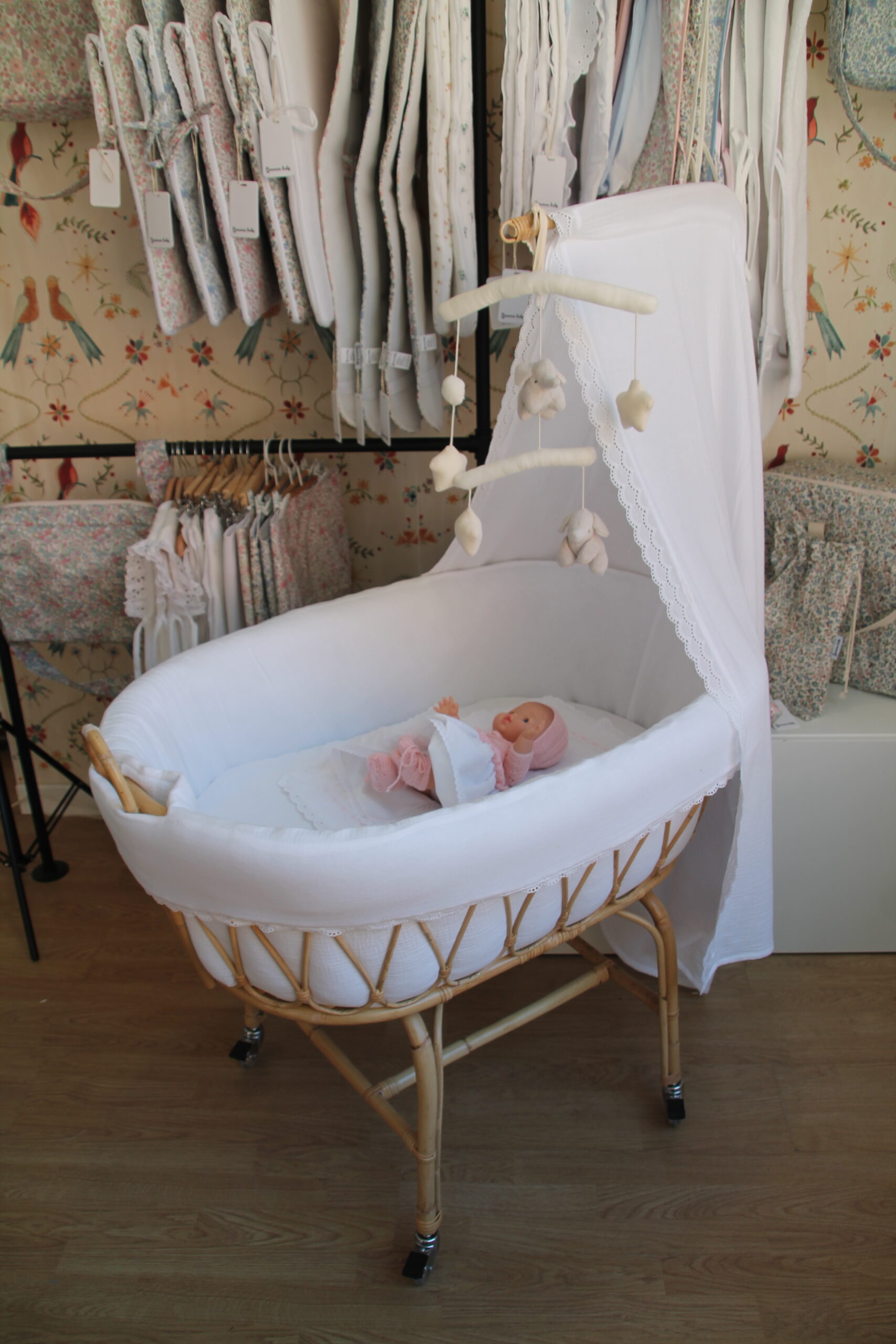 3. Pack Completo: Incluye moisés, colchón y las vestiduras (cubrecapazo y tela del dosel) exclusivas confeccionadas en bambula blanca. Un tejido suave y transpirable.