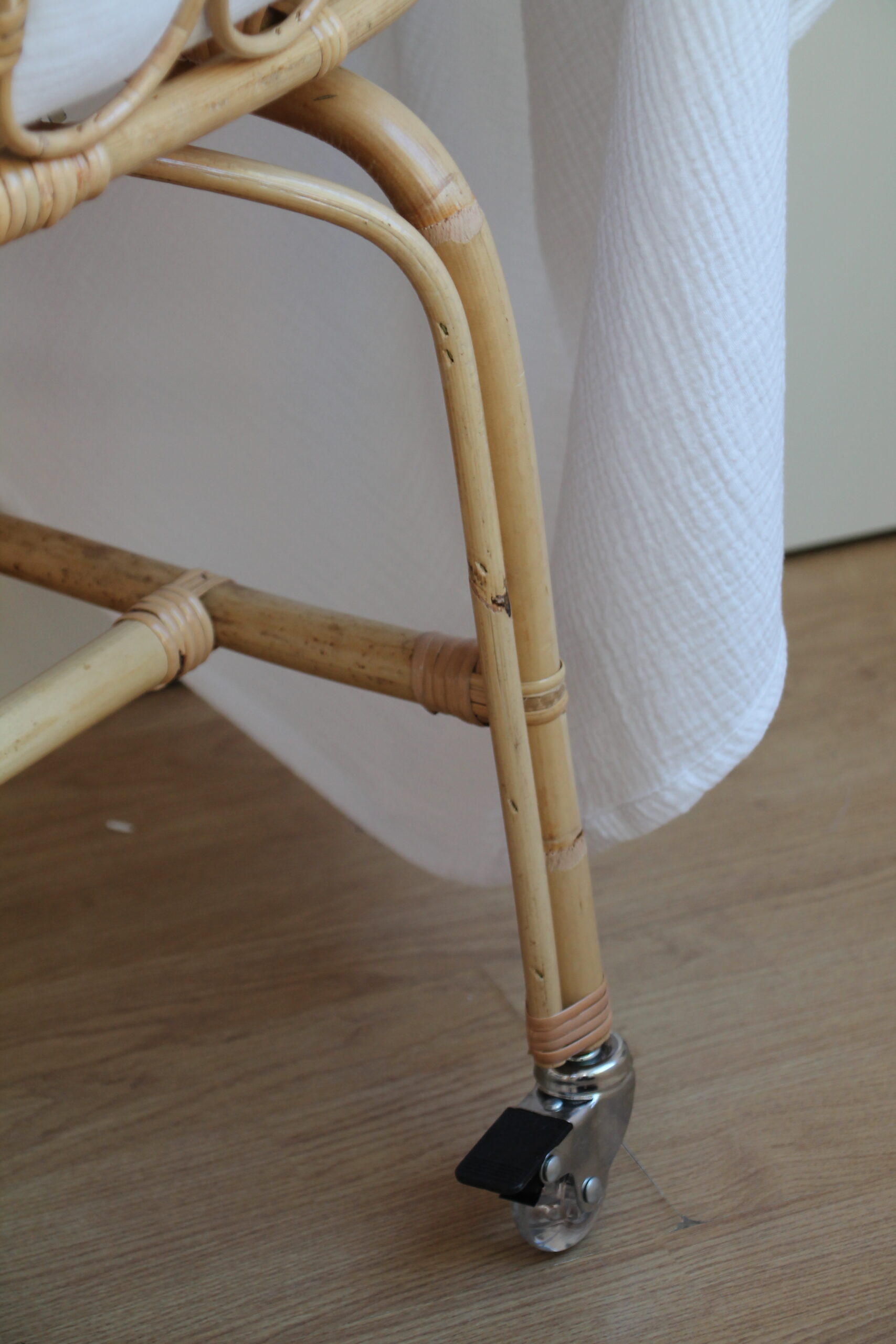 Se compone de dos piezas independientes: un capazo y unas patas que permiten guardarlo fácilmente cuando no esté en uso. Permite una movilidad total gracias a sus ruedas integradas, podrás desplazar el moisés por toda la casa para tener a tu bebé siempre cerca, ya sea en el salón durante el día o junto a tu cama por la noche. Su uso está recomendado desde el nacimiento hasta los 4 o 5 meses (o hasta que el bebé empiece a incorporarse por sí solo).
