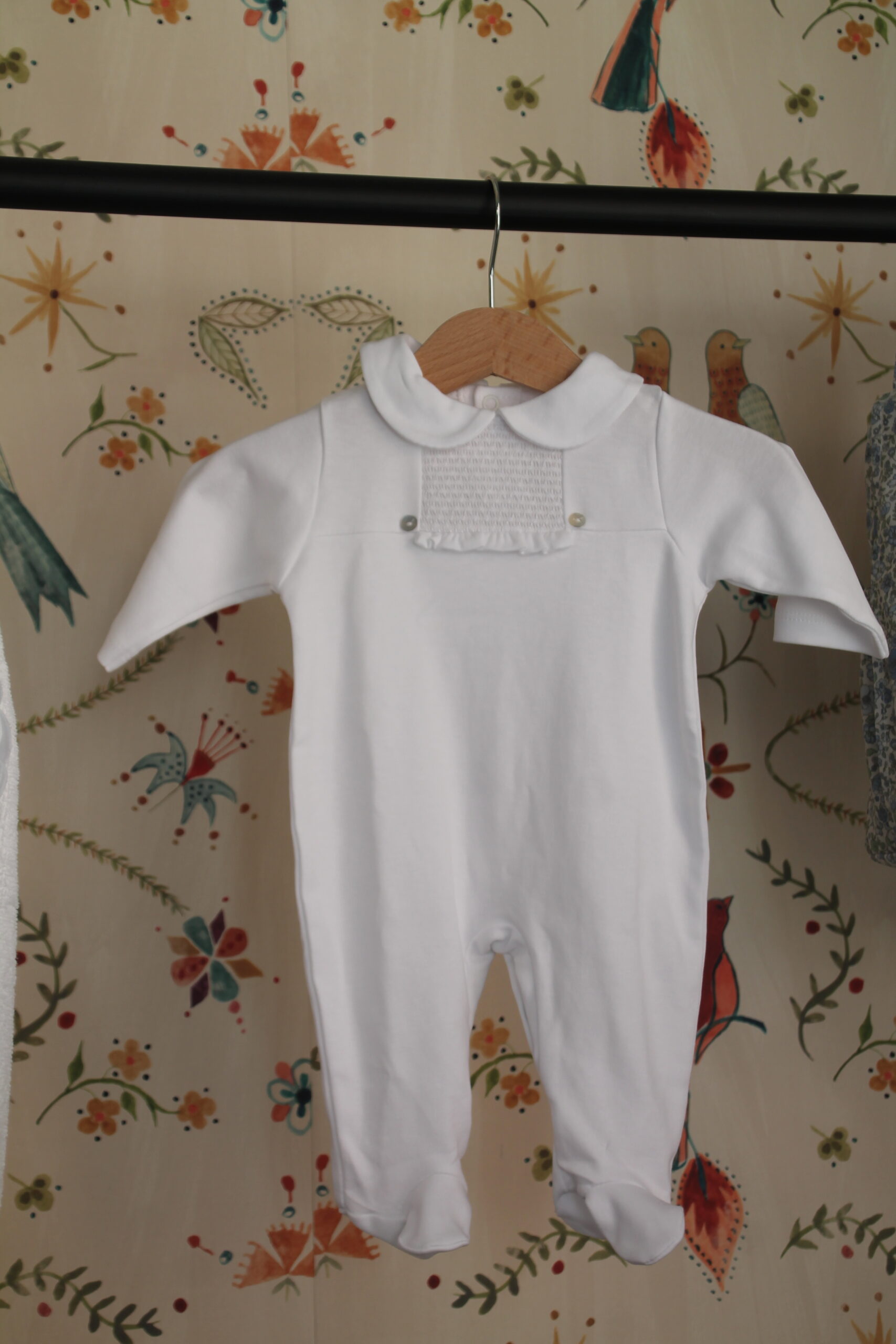 Envuelve a tu bebé en la máxima pureza con nuestro pijama de diseño clásico, confeccionado en 100% algodón de alta calidad. Pensado específicamente para la delicada piel de los recién nacidos de 1 a 3 meses, este pijama combina una estética atemporal con una suavidad inigualable.